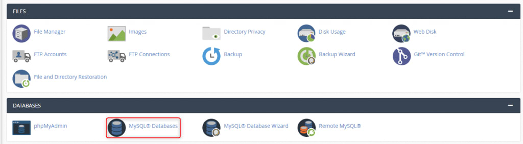 2. Click the MySQL Databases icon under the Databases section.