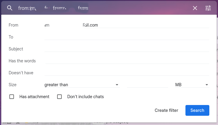 The email address should prefill in the From field. Then, input any additional selections and click Create filter.
