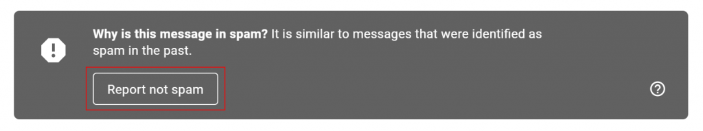 Additionally, you can highlight the email subject by selecting the box next to it, then choose the Not spam option from the main options for the spam inbox at the top of the page.