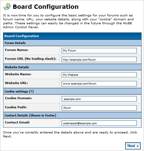Follow the steps below to configure the MyBB files before running the installation script.