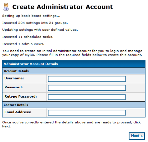 - A MySQL database, for MyBB to use for storing data. See How to create MySQL database with SiteWorx for details. Retain the database and user information for later use during the MyBB installation.