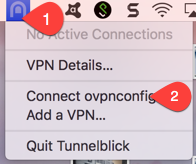 Select the Tunnelblick icon, then click Connect , where is the name of your .ovpn configuration file.