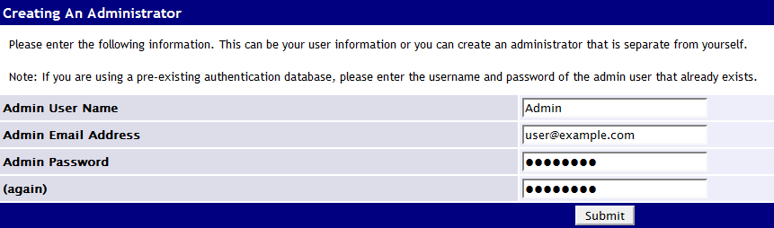 3. Create an administrative account, then click Proceed. Enter a complex password or use our Secure Password Generator.