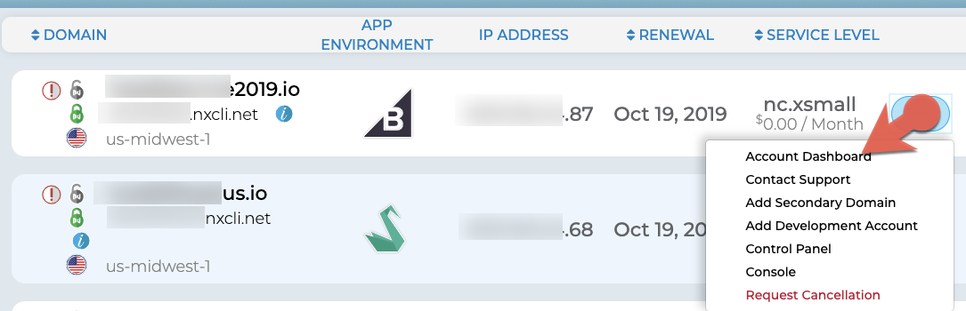 2. Either click its name, or select Account Dashboard from the menu toggle.