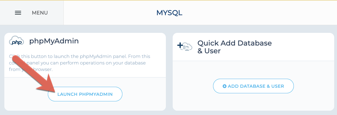 4. Click Launch PhpMyAdmin.