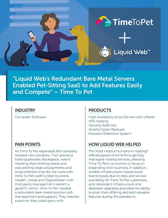 Eager for a provider that met their needs, Time To Pet tried using unmanaged hosts Linode and DigitalOcean along with third-party management services and quickly found this wasn’t a fit either. They needed a true managed hosting partner.
