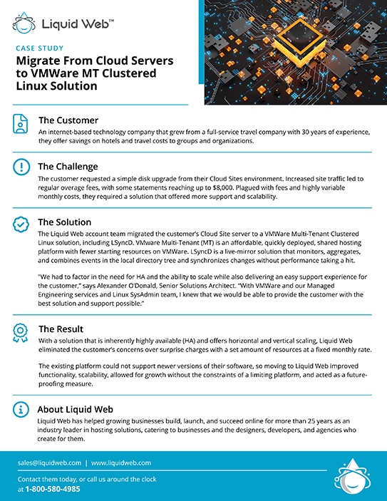 How one technology company left overage fees behind by migrating to a VMware multi-tenant clustered Linux solution