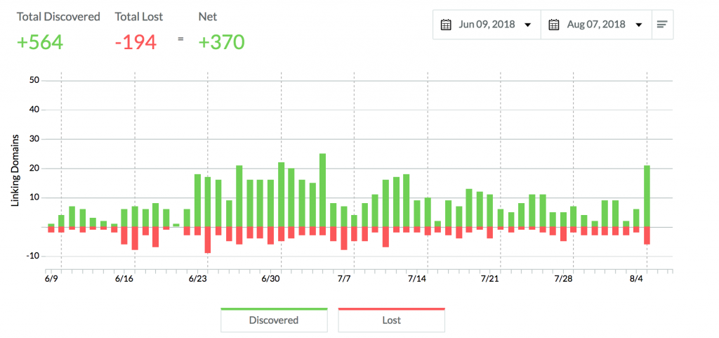 If we review their link acquisition over the last few months, they are still acquiring links more quickly than they are losing them: