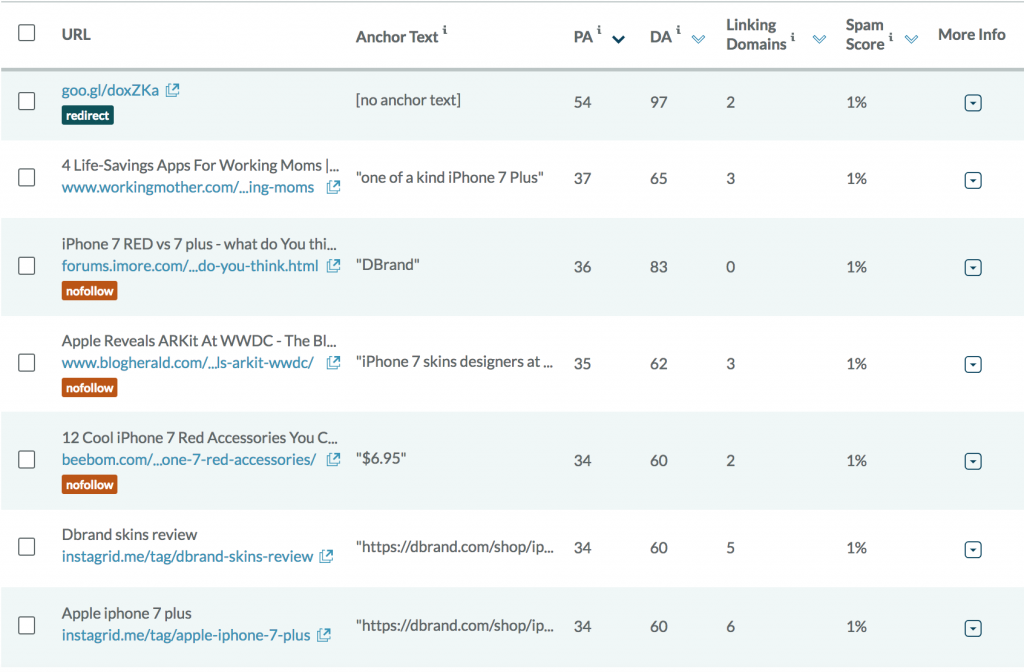 Dbrand has also mostly stayed away from sites that have a high spam score. They’re doing it well and being rewarded with high rankings (though have some other opportunities they could leverage to improve to #1).