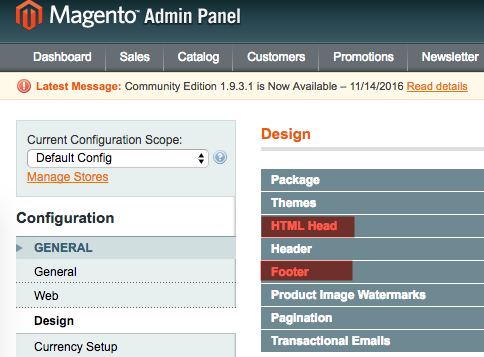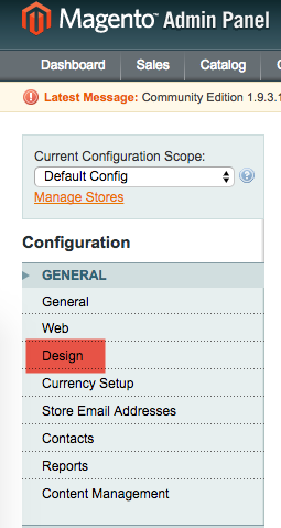 - From the Configuration menu, select General > Design.