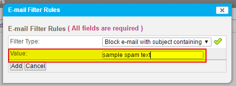 - Click Add. Your chosen spam text will now appear in the Mail Filters section.