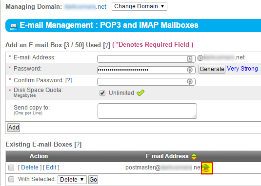 - From the Email Management page, locate your desired email address and click Edit.