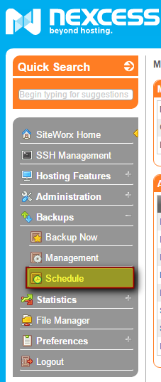 This procedure explains how to schedule automatic backups with SiteWorx. If you want to perform a single, immediate backup, refer to How to perform a one-time backup with SiteWorx.