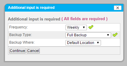 - Partial Backup: Backs up only the elements you choose. You will make this selection after you click Continue.