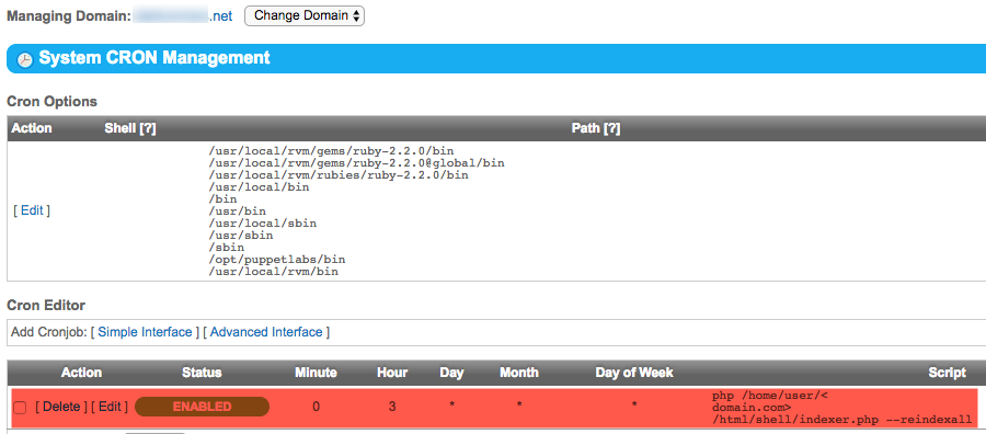 3. The System CRON Management page, in the Cron Editor section, click Simple Interface.