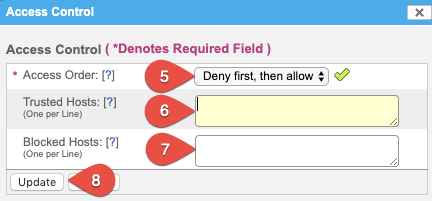 - Allow first, then deny: Trusted Hosts list will be evaluated first.