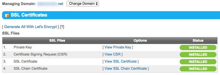 5. If successful, your SSL Certificates panel will resemble what appears below: