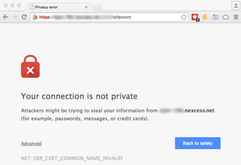 If you use a Nexcess dedicated server, most browsers create a warning when you log into SiteWorx.