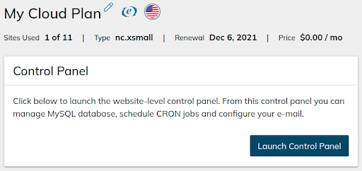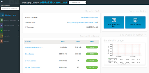 4. You will be redirected to the home page for Nexcess SiteWorx Cloud Control Panel.