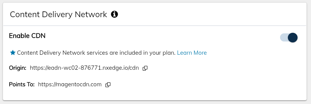 Once the CDN has been enabled the CDN origin URL will now show in the Content Delivery Network section of the performance tab.