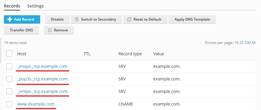 Managing DNS records in Plesk