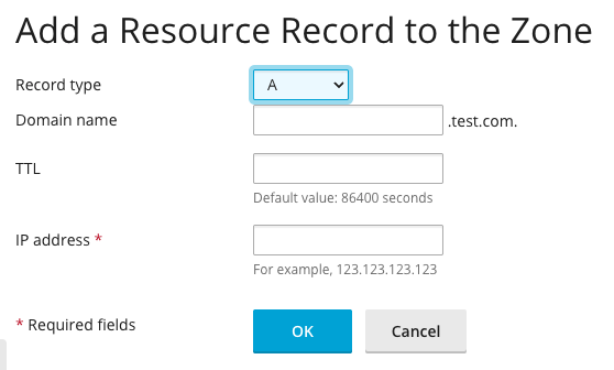 - Enter all the required information (record type, domain name, TTL, and IP address).