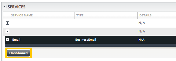 2. Under the Services section on your home screen, you should see your Email service, expand it using the [+] button next to the email service and click on the Dashboard button.