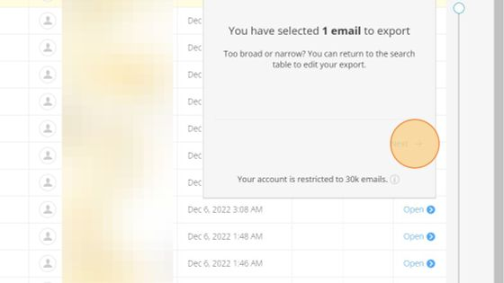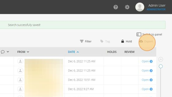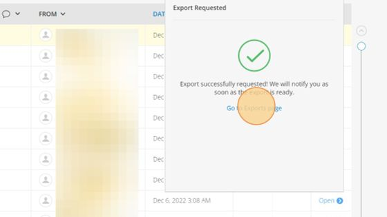 7. Click Exports. Once complete, you will be able to download the email from this interface and will also be sent a link in the notification email.