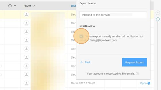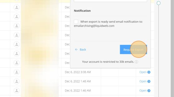 4. Confirm the notification email address when the archive is ready. By default, this will be set to a liquidweb.com address.