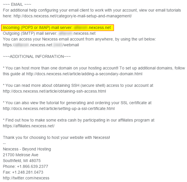 - In the POP Server field, if you are a Nexcess client on a dedicated server plan, enter the domain name corresponding to your SSL certificate. Otherwise, or if you are unsure, enter the hostname of the POP3 mail server as provided to you in your Nexcess Welcome Email, or contact our 24/7 support team.