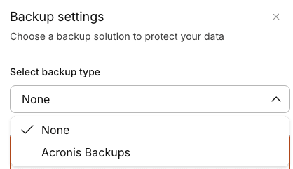 5. In the Backups block, click Set up now to add Acronis backups to your server.
