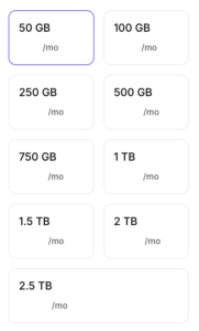 2. Select the plan size based on the capacity of storage space you need. Depending on the backup schedule you select and other factors, we recommend at least twice as much storage as the initial size of the data you want to backup.