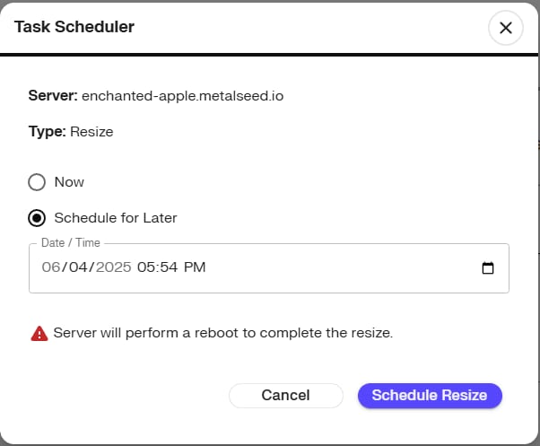Review or Cancel a Scheduled Resize