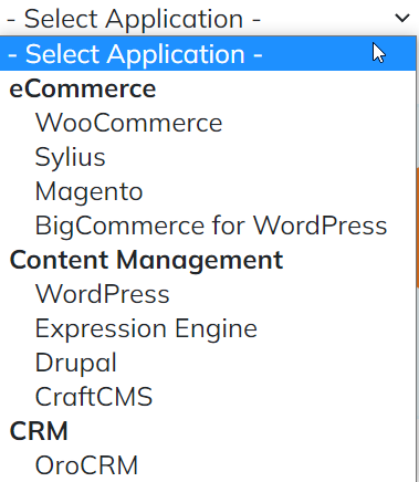 - The next page will offer you a few of the major applications to choose from: to create a new Flex Plan, select from the full list that can be found by clicking on the “Select Application” dropdown menu: