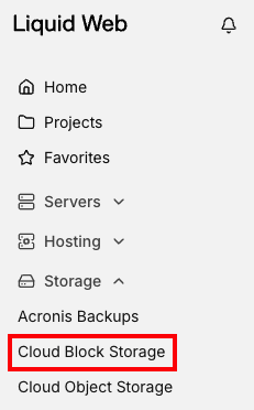 2. Select Storage from the left menu bar, then click Cloud Block Storage.