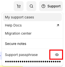 - In the drop-down menu, click the Eye icon to view your support passphrase.