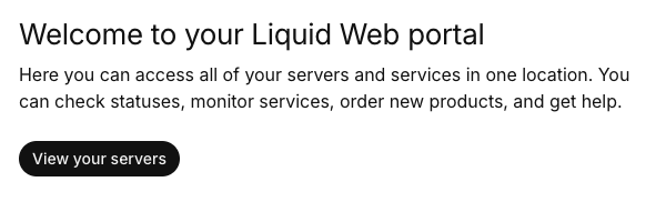 At the top of the home page, you’ll see the welcome to your Liquid Web portal greeting. This includes a link to View Your Servers (one of the most common reasons to open the portal).