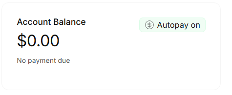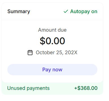 • Your total balance, autopay status, due date, and a ‘Pay now’ button.