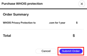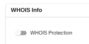 6. NOTE: WHOIS Protection cannot be cancelled once purchased. However, if you need to expose your WHOIS information for some reason, you can toggle it off and on in the Domain Registration page.