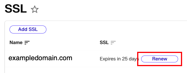 4. If you have any SSLs that are expiring in the near future, you can click on Renew button next to the expiration date.