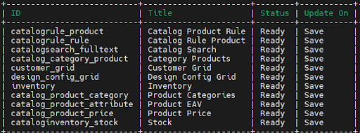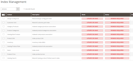 Unlike Magento 1, it is not possible to manually issue a reindex for Magento 2 from the admin panel. Instead, the “Magento_Indexer” performs the tasks for us. We can still set the indexing mode, though. There are two options: “Update on Save” and “Update by Schedule.”