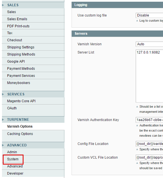 - Scroll down to the ADVANCED sub-menu, then click System.