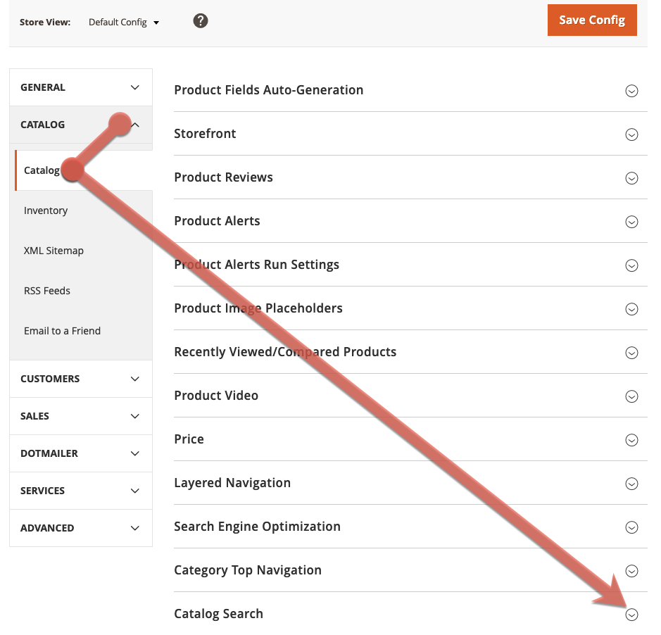 3. From the Catalog drop-down menu, select Catalog, then Catalog Search.