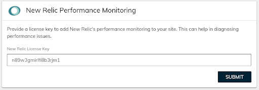 In the New Relic section of the performance tab, add your New Relic license key and then click on the submit button.