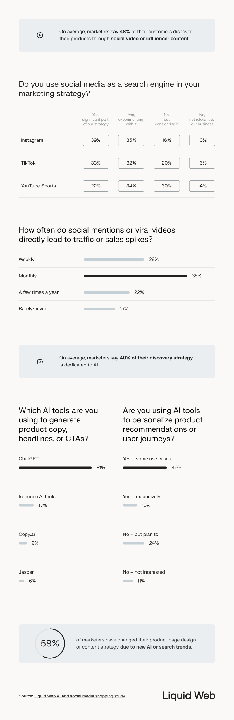 - 58% of marketers have made adjustments to their product page design or content strategy due to new AI or search trends.
