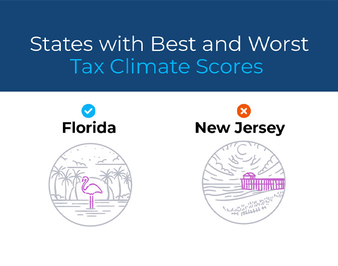 Florida ranked number one overall in our study. The state’s tax climate scored a perfect 10, landing in the number one spot for individual income tax rates and the number two spot for unemployment insurance tax rates. It also ranked number seven for corporate tax rates and just outside the top 20 states regarding its sales tax rank.