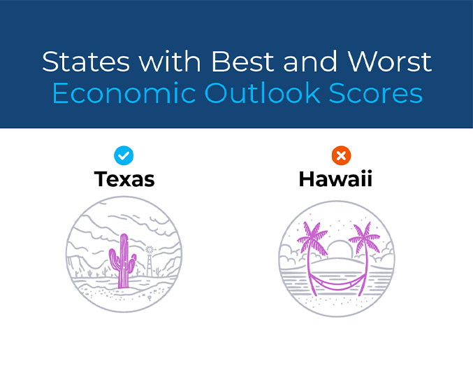 Texas had the highest economic outlook score of all 50 states, and for a good reason. The state ranked number one in the 2019 SBPI, which looked at 62 different measures related to significant government-imposed or government-related costs that directly affect entrepreneurs and small businesses across various industries. What’s more, Texas ranked number four in job growth as of November 2021.