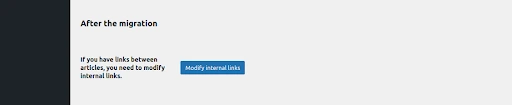 Before leaving this page, scroll down to the section titled “After the Migration” and click the Modify Internal Links button.