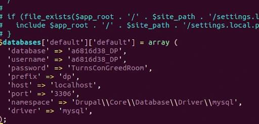 Now you will need to locate a few specific parameters. These are your Drupal username, password, hostname, and database name and prefix. You probably already know a few of these. The rest can be found by exploring your Drupal installation’s core files over FTP.