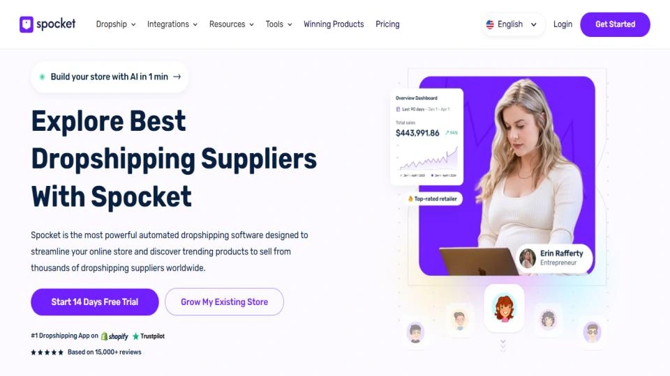 Spocket is an all-in-one dropshipping solution designed for modern ecommerce entrepreneurs. Whether you’re just starting out or scaling your business, Spocket’s AI-driven tools, fast-shipping suppliers, and automated processes make it easier to succeed in the competitive dropshipping landscape. You also get: